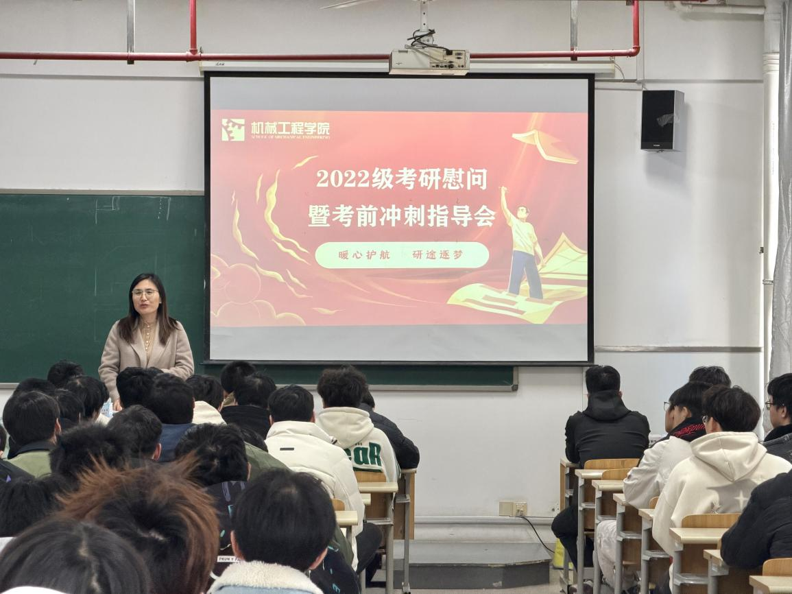为切实关心考研学子备考状态,帮助其缓解备考压力、明确冲刺方向,11月26日中午,我院于知行楼803教室举办2022级考研慰问暨考研冲刺指导会。学院党委副书记王怀芳、学工办主任杨蓉、2022级辅导员以及考研学子参会。